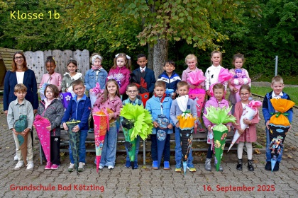 Klasse 1b mit ihrer Lehrerin Susanne Fischer